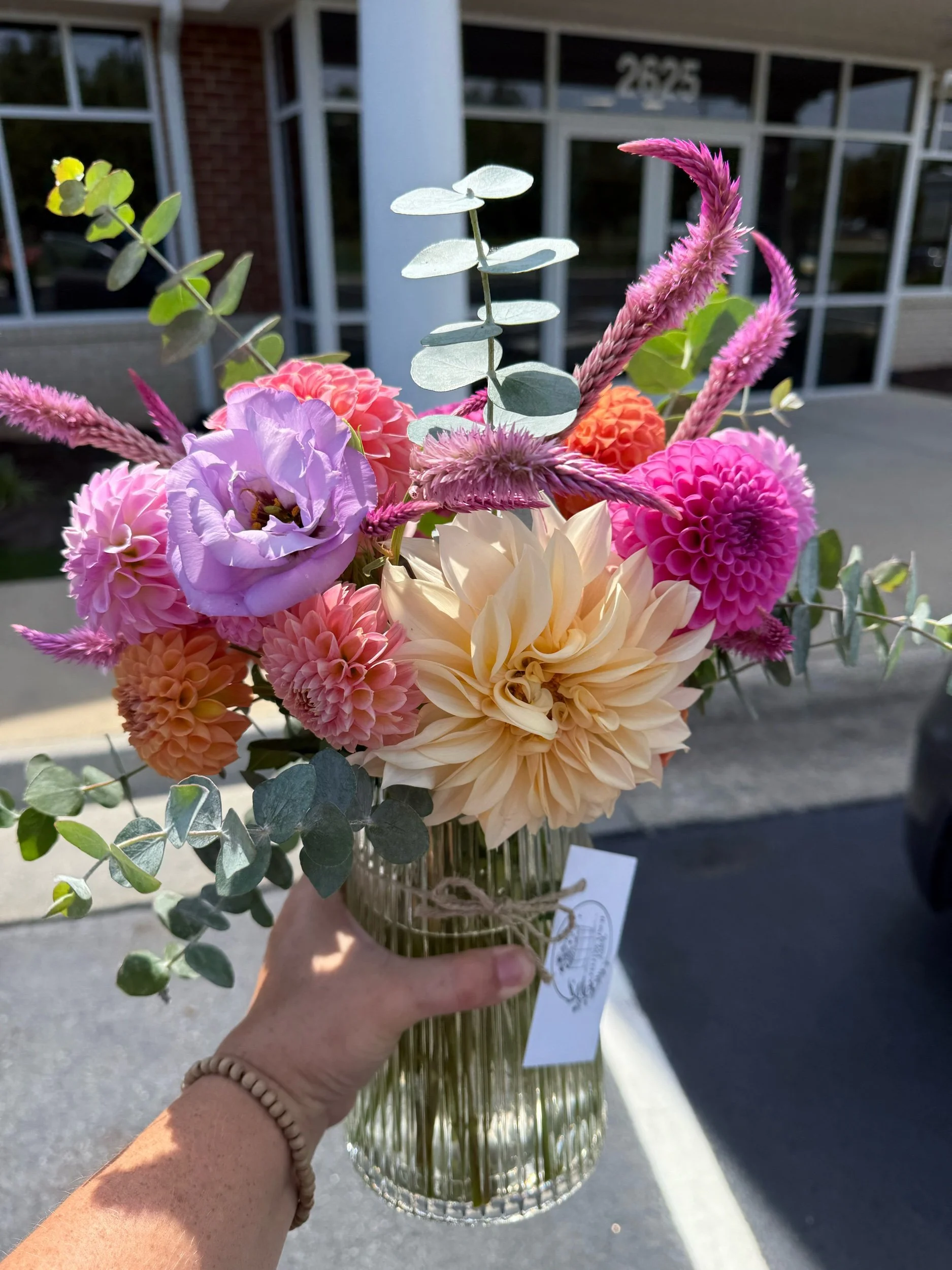 Spruce up your entryway, meeting room table or even your dinning room table with a fresh cut, locally grown flower arrangement. Flower arrangements will be in a glass or decorative vase. These will be delivered to your door at the beginning of each week and the vase from the previous week will be retrieved.